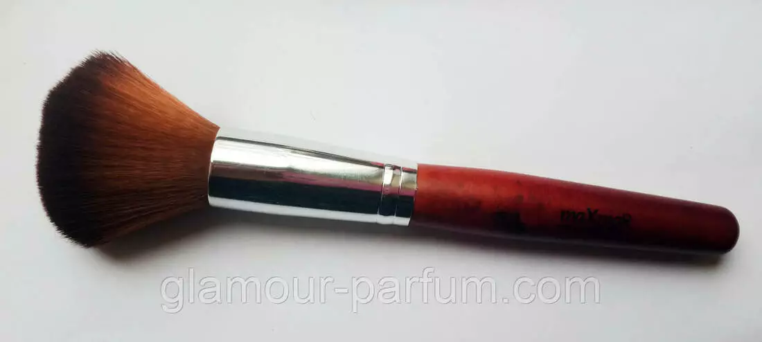 Круглий пензель добре розпилює рум'яна, ніби роблячи рум'янець природним, без чітких меж, надає свіжий вигляд щокам, нею легко намалювати яблучки щік, просто посміхнувшись і повертання злегіла притисну до щоки кисть навколо своєї осі.