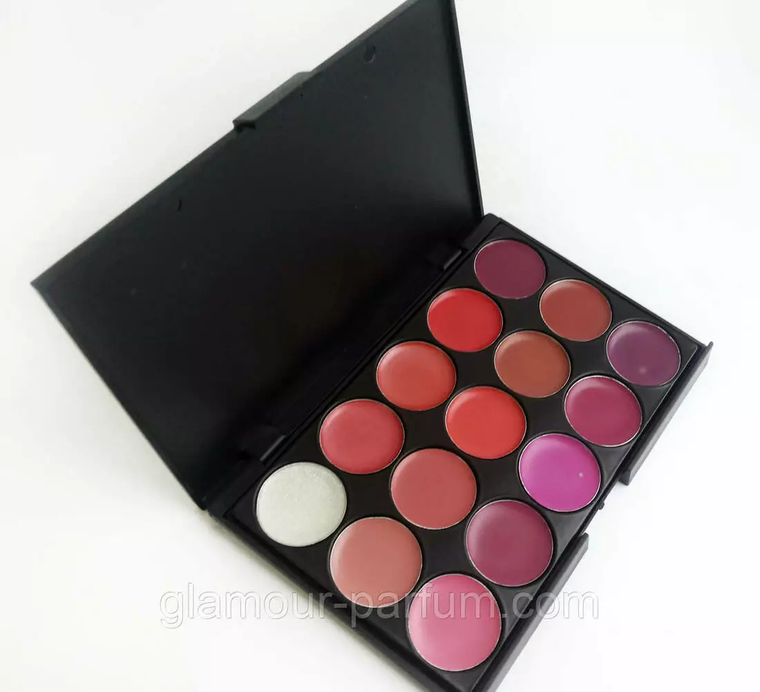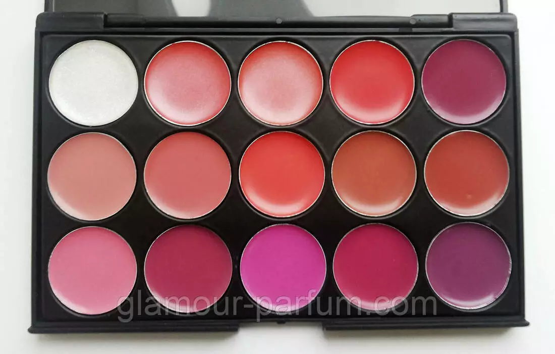 Палітра помад професійного рівня 15 кольору включає в себе помади перламутрової і матової текстури.