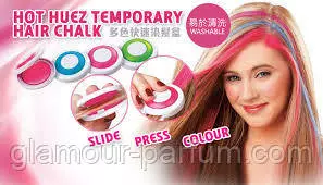 Ваша зачіска залежить тільки від Вашої фантазії та настрою. Ви хочете пофарбувати волосся, окремі пасма або тільки кінчики в яскраві, контрастні кольори? Але гарне волосся, одного разу доведеться або перефарбовувати, або відстригати. На допомогу прийдуть крейда для фарбування волосся HOT HUEZ!
