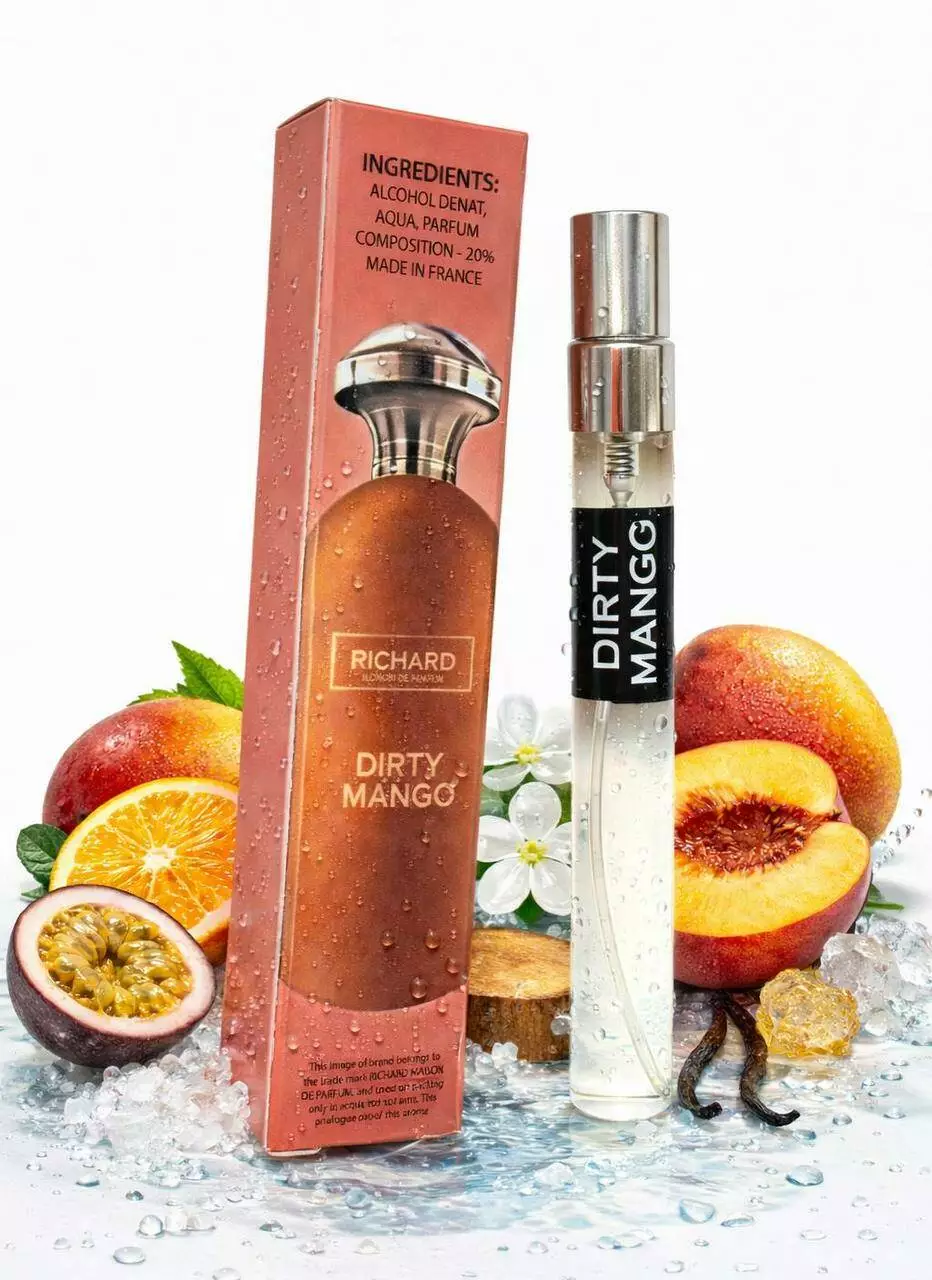 Richard Dirty Mango — це соковитий, зухвалий і дуже сучасний аромат із тропічним характером. Він відкривається вибухом стиглого манго та маракуї з яскравими цитрусовими акордами, створюючи відчуття літа й свободи. У серці композиції з’являються квіткові ноти та соковитий персик, які додають м’якості та глибини. База з мускусу, ванілі та деревних акордів робить аромат стійким і спокусливим. Dirty Mango звучить яскраво, сміливо й дуже апетитно — аромат для тих, хто не боїться бути в центрі уваги ????????.