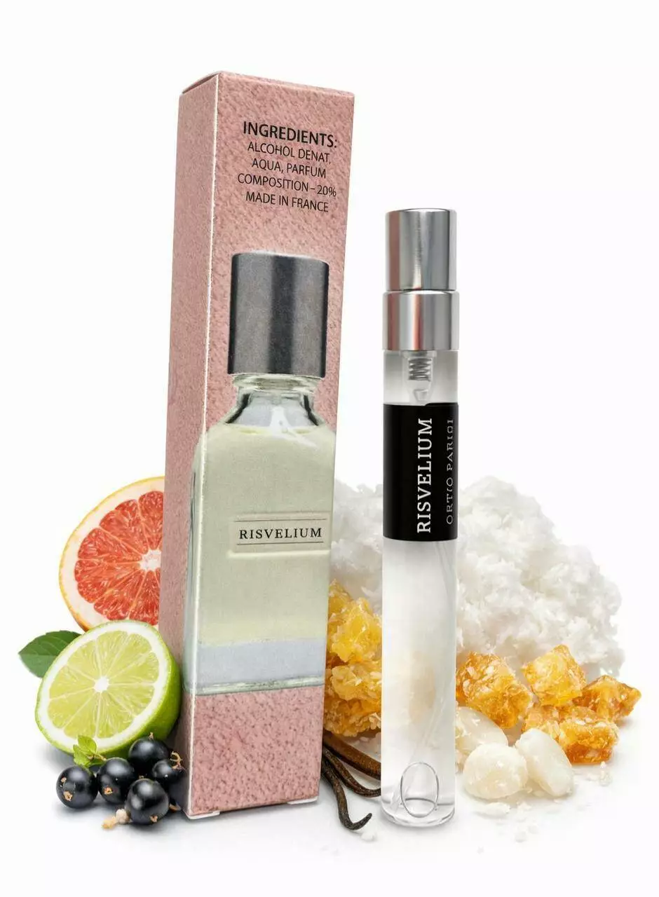 Це сучасний, яскравий і провокаційний аромат з фірмовим характером Orto Parisi. Він відкривається вибухом свіжих цитрусових нот грейпфрута та бергамоту, створюючи відчуття чистоти й енергії. У серці композиції звучать соковиті фруктові акорди чорної смородини та ананаса, які додають аромату несподіваної солодкості та глибини. Базові ноти мускусу, амброксану та амбри формують теплий, тілесний і дуже стійкий шлейф. Аромат звучить сміливо та сучасно. Він поступово розкривається на шкірі, змінюючи свій характер. Risvelium підкреслює індивідуальність і свободу. Це аромат для тих, хто не боїться виділятися. Він підходить для будь-якої пори року. Ідеальний вибір для поціновувачів нішевої парфумерії.