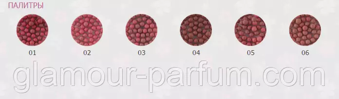 Рум'яна в кульках добре лягають на шкіру та легко розтушовуються. Мають м'який світловідбивний ефект. Поєднання кульок різних відтінків надає обличчю природний рум'янець. Не обсипається упродовж дня. Рекомендується наносити рум'яна широким пензлем після базового тонального засобу або пудри.