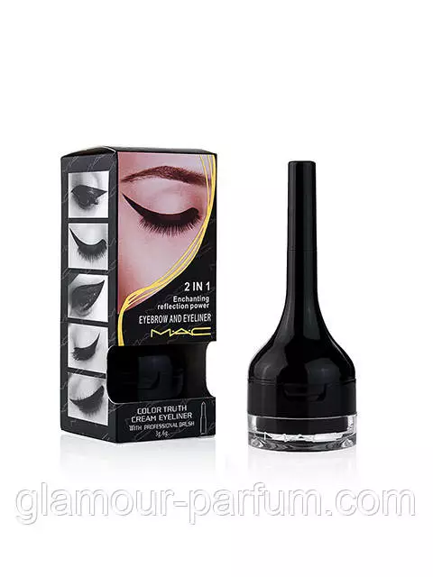 Рідкий гелевий засіб M.A.C "Color Truth Cream Eyeliner" Добре, що за його допомогою можна провести чітку лінію будь - якої товщини. Лайнер висихає за лічені секунди, тому можна не побоюватися, що засіб розмежовується при неаккуратному русі. Продукт містить яскраві пігменти, тому на повіках стрілки будуть дуже інтенсивними.