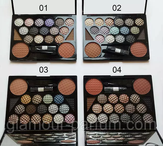 Перламутрові та матові кольори дають змогу вдало підібрати поєднання для денного та нічного макіяжу. Невеликий футлярчик, у який укладений набір тіней і рум'ян, чудово поміститься в невелику дамську сумочку, не займаючи дуже багато місця.