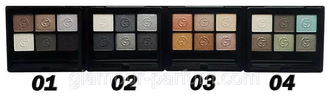 Приголомшливий набір тіней для кожного вашого нового образу представляє бренд Armani (Армани). Надзвичайно чуттєві, ніжні, чарівні відтінки додадуть вашим очам небувалу виразність. Незрівнянного колірного ефекту дає змогу домогтися надтонка, м'яка пудрова текстура тіней, яка легко та приємно наноситься на повіки. Чорна лакова коробочка гідно доповнить вашу косметичку, а в подорожі стане незамінною. Елегантний набір — це приголомшливий результат роботи професійних візажистів, який створювався відповідно до сучасного підходу до макіяжу очей.