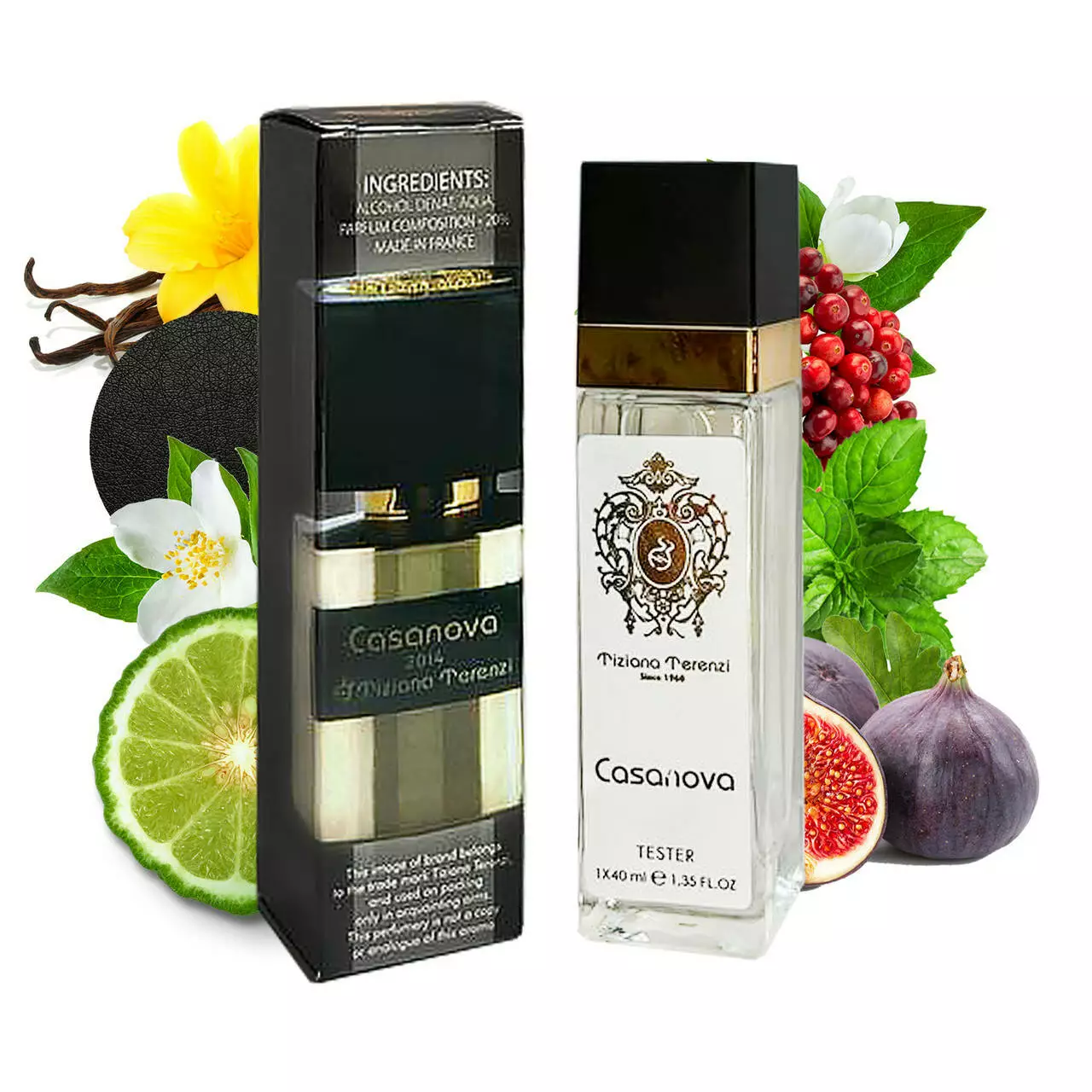 Tiziana Terenzi Casanova - це неперевершене поєднання східних прянощів і свіжих деревних ароматів. Верхні ноти тут укладені в бергамоте, жасмин, листя інжиру, орхідеї пудрових акордів. За ними слід нота серця - ваніль, кардамон, шкіра, мирра, рожевий перець, сіра амбра, уд. Завершує цей шедевр ніжний шлейф з амбри, амброксана, білого кедра, білого мускусу, ветівера і дубового моху.
