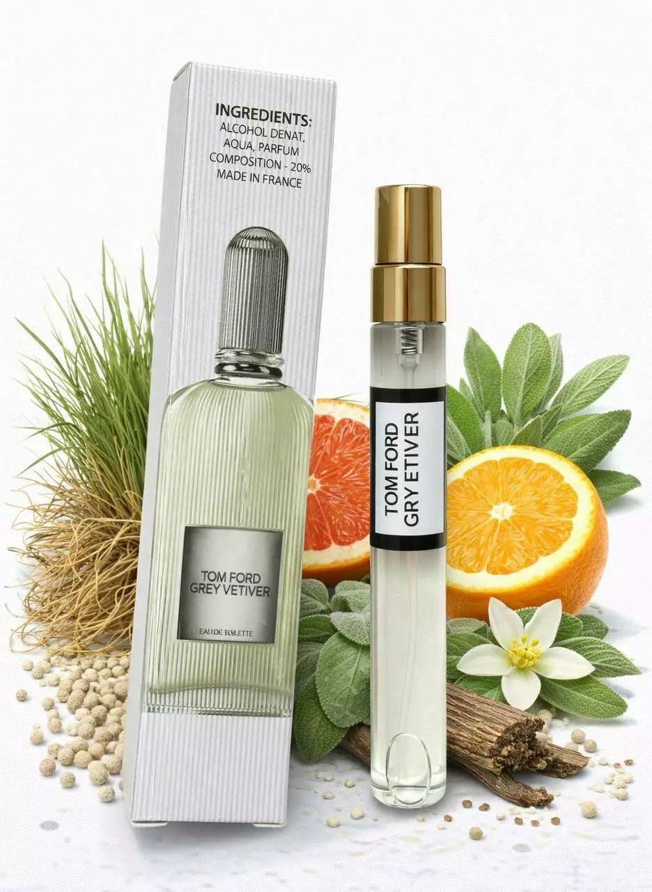 Tom Ford Grey Vetiver — це втілення бездоганного стилю та впевненості. Аромат відкривається свіжими цитрусовими нотами грейпфрута з зеленими відтінками шавлії, створюючи чисте й енергійне звучання. У серці композиції домінує витончений ветивер у поєднанні з ірисом і мускатним горіхом, що додає глибини та характеру. База з деревних акордів, амбри та дубового моху робить аромат сухим, благородним і стійким. Grey Vetiver звучить стримано, дорого й інтелігентно — ідеальний вибір для сучасного чоловіка ????????.
