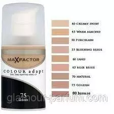 Розумні частинки, адаптуються до кольору поверхні, виявляють і відображають різноманітні пігменти шкіри обличчя, надаючи їй цілком природний вигляд, не приховуючи природного сяйва. Завдяки микропигментам і світловідбиваючим частинкам COLOUR ADAPT добре приховує недоліки шкіри, дрібні зморшки і глибокі пори. Містить спеціальні молекули – еластомери, які забезпечують шовкову, гладку текстуру шкіри. Містить SPF4. Не забиває пори. Colour Adapt швидко вбирається і не створює ефекту маски, тримається протягом всього дня. Його можна використовувати як основу під макіяж особи, а також в качетве самостійного тонального засобу. З Колор Адапт від Макс Фактор Ваш макіяж особи бездоганний!