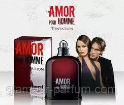 Парфуми Amor Tentatieon pour Homme — це невловний і невидимий момент, коли створювана іскорка симпатії здатна призвести до пристрасного пожежі почуттів і бажань, ім'я якого — пристрасть і любов. Незвичайна чуттєвість і емоційність цього запаху розкривається в першу мить, запах провокує бажання забутися й піддатися плоті.