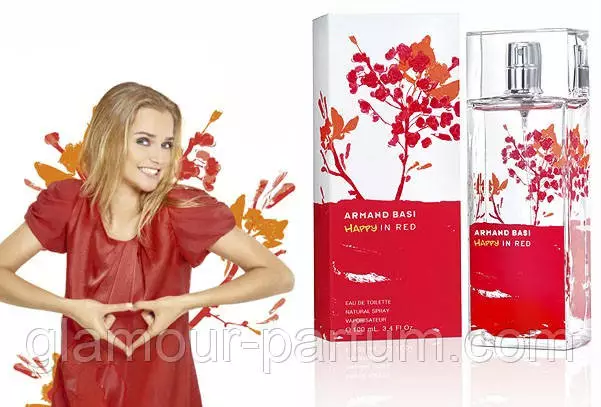 Дамська туалетна вода від Armand Basi під назвою Happy in Red — новий весняний варіант відомого аромату In Red. Це яскравий, наповнений позитивом і динамізмом аромат. Він спеціально створений для дівчат, прикрасою яких є їхня чарівна усмішка.
