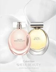 Парфуми Sheer Beauty від Calvin Klein допоможуть молодій дівчині стати впевненою, стильною й оригінальною, для якої будь-які починання принесуть тільки успіх, запах вигідно підкреслить природність і чарівність молодої леді. Квітковий букет сміливо поєднується з фруктово-ягідним ароматом. Серцем аромату виступають ніжні білі квіти, які переплітаються з ароматом ванілі, сандалу та мускусу. Яскраві нотки бергамоту, соковитого персика та червоних ягід пом'якшують солодкуватий аромат, а пишна півонія, ніжна лілія й загадковий жасмин надають аромату ніжності та легкості. Рекламним символом аромату Sheer Beauty стала знаменита топмодель Daphne Groeneveld.