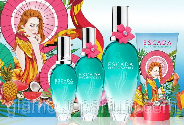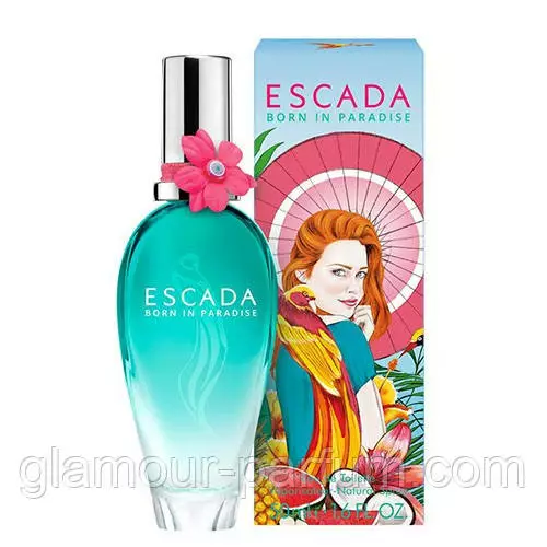 Гурманський аромат призначений для літа — це Escada Born in Paradise (Ескада Борн Ін Парадайз). Назва «Різдвона в раю» найбільш точно зображає суть парфумерної композиції, її чарівне сяйво та ніжність, екзотичні фарби. Він спеціально був розроблений для сезону відпусток, кокетства та радості. Прекрасні дівчата мають відчути свою чарівність і шарм, ввімкнути всю силу сексуальності, щоб опинитися в країні мрій. Аромат малює картину екзотичного раю — дивовижного місця, наповненого калейдоскопом емоцій, переживань, флірту та запальних ритмів.