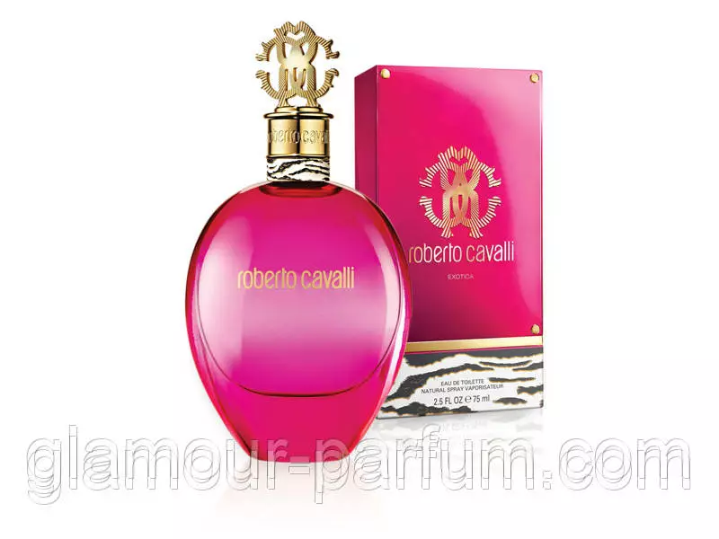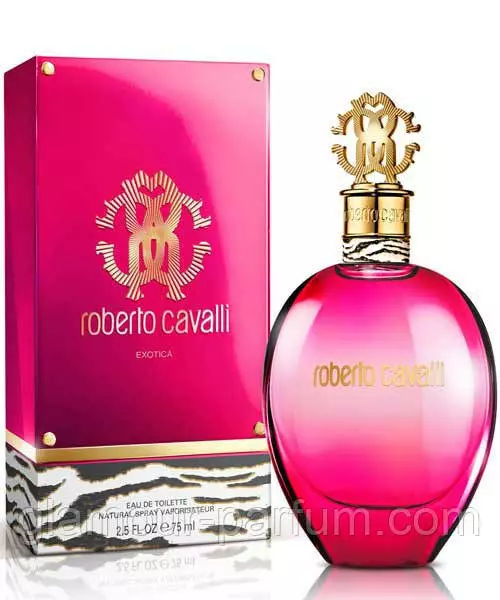 Героїня цього чуттєвого аромату, який створений парфумерами модного дому Roberto Cavalli, народилася на екзотичних (можливо, Карибських) островах, де не в'яне прекрасні давні традиції, які незмінно пов'язані з чудовими кольорами. Вона чарівна, а її зухвалий характер зовсім не применшує, а тільки підкреслює її чарівність. Краса парфумів Роберто Каваллі Екзотика сходить до композиції Roberto Cavalli for Her (2012), але його мелодія насиченіша та розкішніша. Виразна увертюра підносить яскраві й екзотичні відтінки манго, які переливаються в серці, підлогове квіткою франжипані та спогадами про нескінченні захоплення літніх днів, а шлейфовий посмак привносить у композицію смолистість сандалу та пристрасні відзвуки спекотних ночей. Кришечка овального жіночного флакона виготовлена як ажурний логотип бренда. Формат міксу — 75 мілілітрів туалетної води.