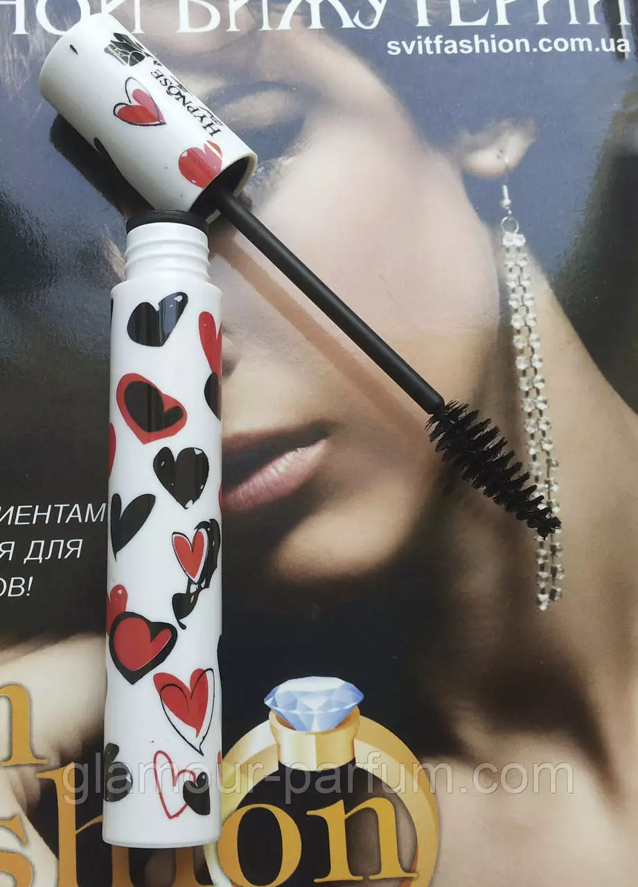 Lancome Hypnose Doll Eyes by Alber Elbaz туш з ефектом «накладних вій»! Вона робить очі більш розплющеними, вії густішими, а погляд виразнішим. Плаття з яскравими червоними химерними сердечками — едака «куколька», поєднання пристрасті та невинності — туш Doll Eyes відкриває показ колекції.