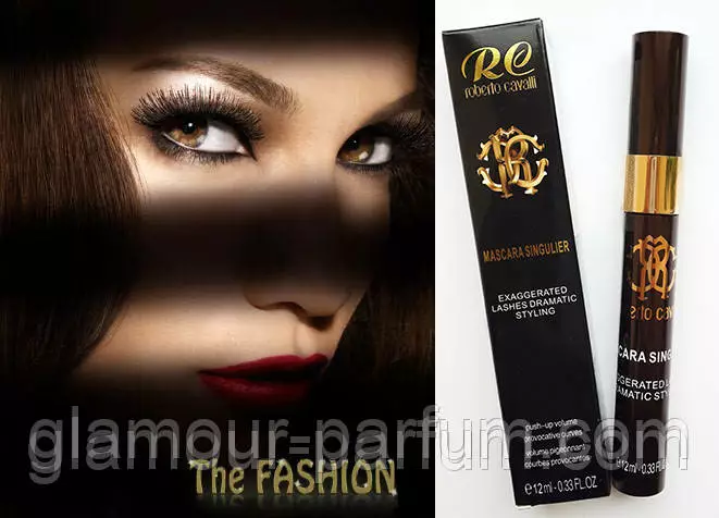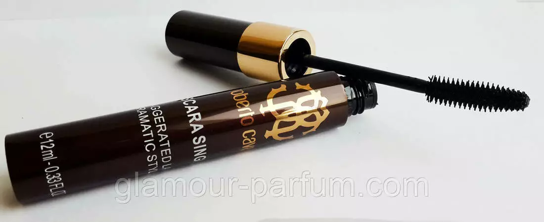 Туш від Roberto Cavalli (Роберто Ковалли) mascara Singulier Exaggerated Lashes Dramatic Styling володіє приголомшливим ефектом потрійної дії: додає об'єм, подовжує і підкручує вії, ретельно промальовуючи їх у підстави, створюючи ефект накладних вій, роблячи погляд більш драматичним і виразним. Вії загинаються вгору і зберігають цей вигин надовго. Особливе розташування щетинок дозволяє відокремити вії один від одного і кожну покрити кольором, роблячи їх товщі, об'ємніше і перешкоджає їх злипанню.