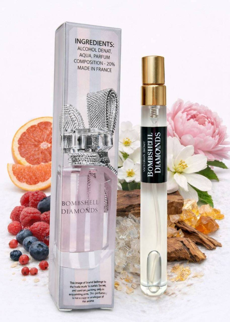 Victoria’s Secret Bombshell Diamonds 2013 — це яскравий і жіночний аромат із блиском і впевненістю. Він відкривається свіжістю грейпфрута і соковитими ягідними акордами, створюючи енергійну й іскристу ауру. У серці композиції розквітають ніжні квіткові ноти півонії та жасмину, надаючи аромату елегантності й чуттєвості. База з мускусу та амбри додає м’якості й стійкого, легкого шлейфу. Bombshell Diamonds звучить свіжо, життєрадісно і дуже привабливо, ідеально підходить для дня, активного настрою та весняно‑літнього сезону. ????