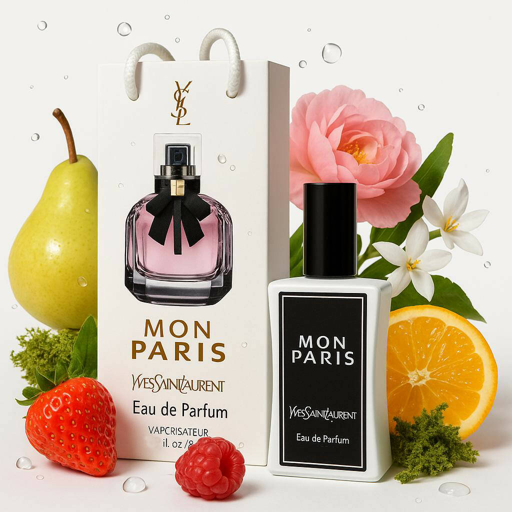 Париж — це чарівне місто, повітря якого просякнутий любов'ю і пристрастю. Адже не дарма його називають «місто закоханих». Знаменитий французький бренд Yves Saint Laurent створив черговий парфумерний шедевр, який оспівує красу, витонченість та стиль чудового міста. Аромат парфумованої води Mon Paris уклав в собі пристрасть побачень, солодкість перших поцілунків і глибину емоцій, які переживає кожна жінка в стані закоханості.