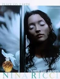 Nina Ricci L`Air du Temps є символом любові і чистоти душі. Чутливість, непідвладний вплив часу, вічної прихильності і турботи, так тонко виражена у вигляді двох голубок, що вів флакон з ароматом. Верхні ноти бергамота і палісандра складають « поправу» злегка пряну нотку гвоздики, яка є головним компонентом аромату. Цвіт троянди, жасмину і філука оповите теплим дерев’яним шлейфом з кедру, сандала, мускуса та амбри.