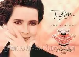 Tresor від Lancome — це яскравий аромат розкривається фруктовою свіжістю, що переходить у пробуджувальну та дивовижну «серце», повну романтики та ніжної усмішки. Свіжа фруктова туалетна вода відкривається нотами абрикосової троянди, змішаними з іскристою м'якістю ягід смородини. Серцеві ноти розкриваються ароматами бузок і пелюсток магнолії. Чиста «база» складається із сандалу та кремових нот ванілі. Парфумована вода та парфуми розкриваються нотами пелюсток троянди, квітки абрикоса, квітки персика, конвалії, ванілі, геліотропа, ірису, троянди, амбри, сандалу та мускусу. Флакон у формі перевернутої піраміди відбиває світло, як дорогоцінний камінь. Прозорий і прекрасний, він сяє кольором рожевого шампанського.