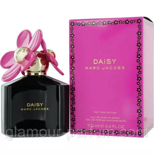 Нова Ароматка 2011 рік Daisy Hot Pink от Marc Jacobs дивує Дивовижним дизайном і Високоякісні букети, які старанно підібрані. Додає привабливості, привабливості та жіночості. Смачно-фруктовий букет парфумів вп'є і викликає захоплення, а стиль оформлення відображає задуми парфумера: неординарний чорний флакончик з плавними лініями звужується золотими кульками, з яких ростуть дві яскраво - рожеві маргаритки.