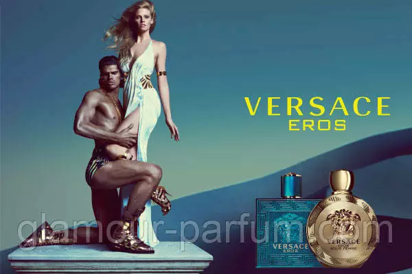Цікаво, що в разі з цією туалетною водою символ компанії Versace настав вельми доречним, оскільки аромат присвячений давньогрецькому богу любові Еросу. Точніше, не зовсім еросу, а тому обставину, що навіть сам бог не зміг встояти перед жіночими чарами. За словами креативного директора дому моди, Донателли Версаче, саме спокусливий Ерос і став головним персонажем рекламної кампанії цієї парфумованої води. Роль бога кохання виконав манекенник Браян Шиманскі, а роль спокусливої Ероса красуні зіграла топмодель Лара Стоун.
