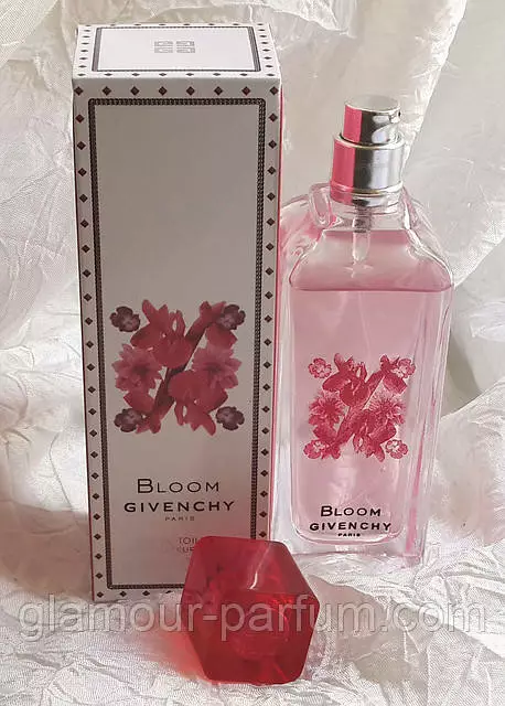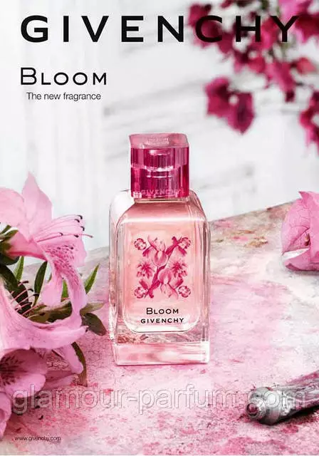 Незвичайна новинка Givenchy Bloom (Живанші Блум) З'явилася на початку 2013 року, вже завоювала чимало прихильниць серед прекрасної статі. Перші акорди миттєво борються новизною й унікальністю поєднання малини та чорної ікри, вони віддають свіжістю й соковитістю. Далі композиція розкривається чудовим квітковим букетом із найніжнішої фіалки, таїтянської тіаре й ірису, ноти серця заворожують і п'янять, а рівновагу дають змогу знайти ноти бази, представлені мускусом, ладаном і деревними нотами. Жіночність і елегантність власниці парфумів стане прикладом для наслідування.