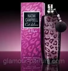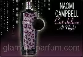 Cat Deluxe at Night – гламурна версія аромату Cat Deluxe від Naomi Campbell. Парфумерна композиція відкривається фруктовим коктейлем з чорної смородини, груші та екзотичних фруктів, які переходить в «серце» з цикламена, півонії і квітки бавовни. «База» складається з цінної деревини і амбри. Цей парфум такий же елегантний, чуттєвий і спокусливий, як і сама Наомі.