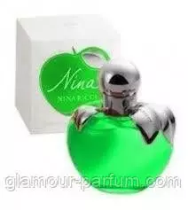 Це аромат спокуси, призначений для дівчини, яка вміє мріяти і радіти життю. Вона - втілення жіночності, свіжої, наївною, чистої і незайманої. Вона ще вірить у казку, і Nina green apple підтримує її мрію... Флакон парфуму виконаний у формі зеленого яблука, прикрашеного сріблястим ковпачком з пелюстками.Парфумерна композиція включає початкові ноти зеленого яблука, «серце» жасмину і шлейф з білого мускусу.